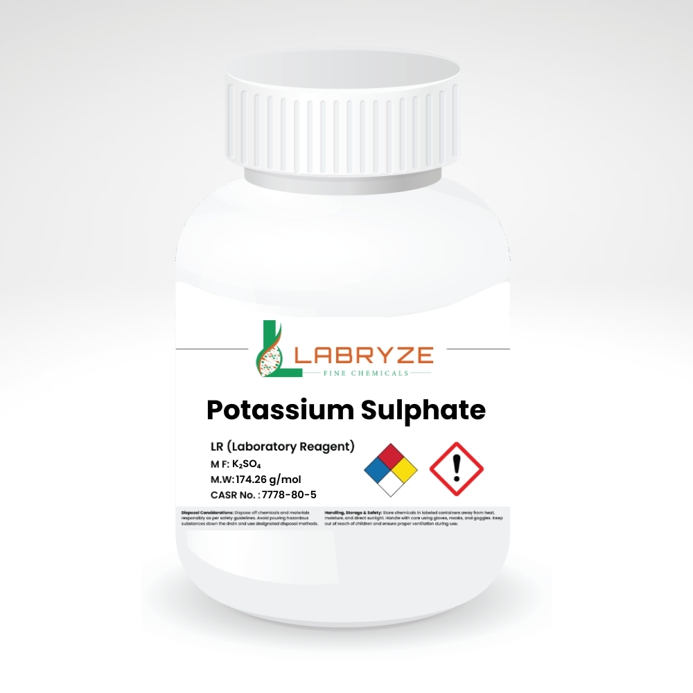 Potassium Sulphate is a high-purity inorganic salt widely used in analytical chemistry, solution preparation, and laboratory research. It is chemically stable and non-hygroscopic, making it easy to handle and store.